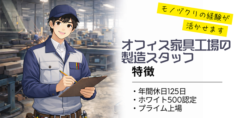 | 職種 | 年間休日125日・オフィス家具の機構部品の組み立てスタッフ |